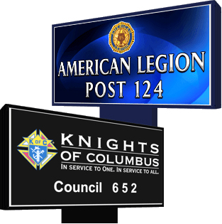 We are partnered with Stewart Signs who is one of the leader's in providing high quality signage to American Legions, VFWs, Elks and Moose Lodges, and other community organizations world-wide. We work with national and state level organizations to ensure you the highest quality sign at the best price, and are a licensed provider for the American Legion and the VFW.